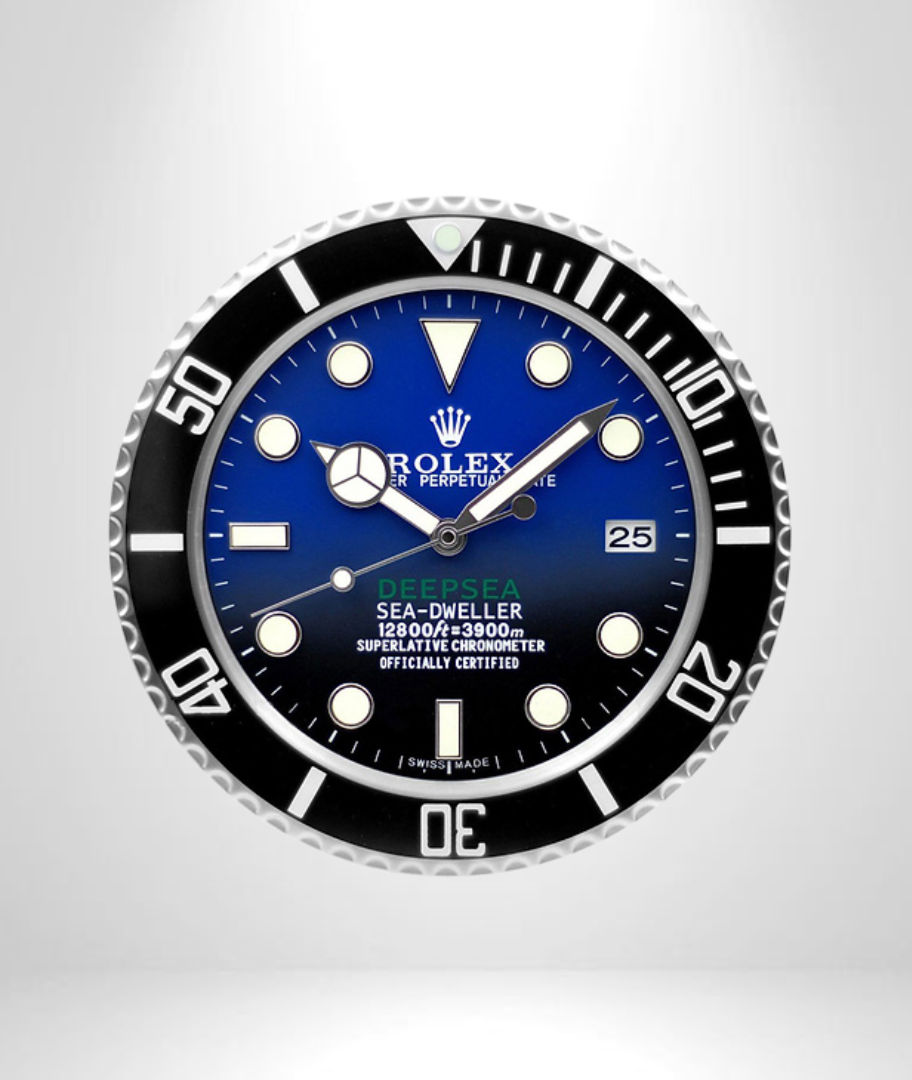 Elevate your space with the Rolex Deep Sea Wall Clock in striking Steel Blue. Designed for aficionados of precision and luxury, this timepiece-inspired wall clock embodies the bold elegance of Rolex’s legendary Deep Sea collection. Its deep steel blue dial paired with sleek stainless steel accents exudes sophistication, making it a statement piece for any office, living room, or luxury space. The minimalist yet impactful design seamlessly blends functionality with prestige, perfect for collectors or anyone seeking a touch of timeless class.
